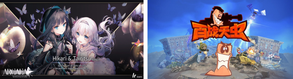 ▲左)海外市場で好評を得た3D落下型リズムゲーム「Arcaea」は版号を取得。これから中国スマホゲーム市場に進出