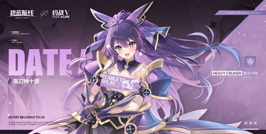 また、簡体字版「アズールレーン」は11月21日から「デート・ア・ライブV」とコラボを実施し、コラボ限定キャラクター「夜刀神十香」のほか、 「デート・ア・ライブV」の女性キャラクター衣装などが多数実装された。特に水着衣装は現地プレイヤーの間で話題を呼んだ。本コラボは日本版も同日実施。