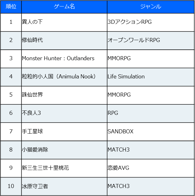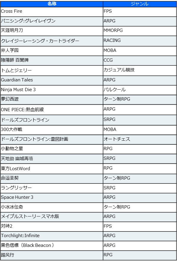 ●Bilibili(嗶哩嗶哩)ライブ配信人気スマホゲーム一覧