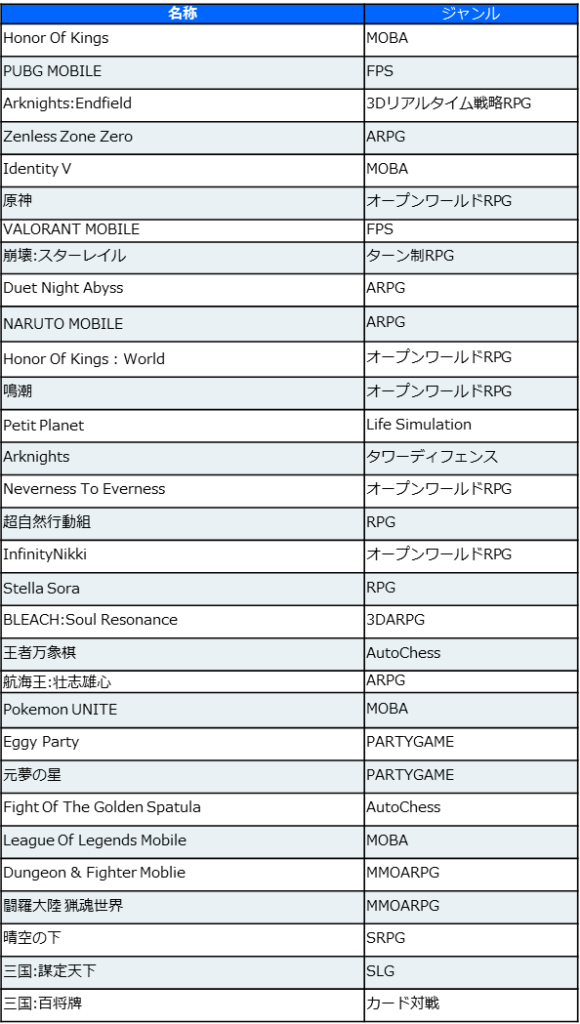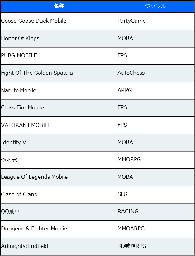 1月に配信を開始した「Goose Goose Duck Mobile」と「Arknights:Endfield」がライブ配信チャンネルに登場。上記の2つの新作はジャンルが異なるものの、リリース前から注目を集めていた作品だ。リリース後の実績も、タイトルのポテンシャルを証明する結果となった。