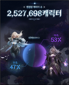 発売1週間で作成されたキャラ数は計252万7,698体で、種族の内訳は天族47%、魔族53%であった。