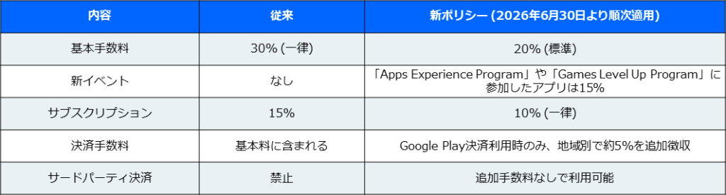 ▲Google Playはアプリ内課金(IAP)の手数料引き下げ、サードパーティー決済を解放、サードパーティーアプリストアの解放を含む三つの重要な改革を実施し、2026年内に全て完了する予定