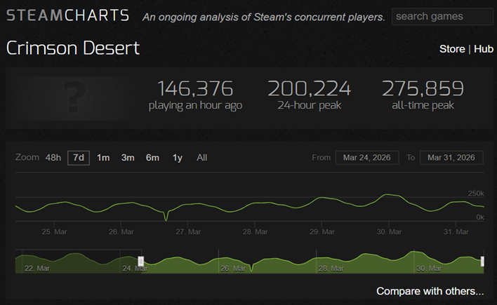 ▲「Crimson Desert」は、Steamで最大同時接続者数が27万人を突破