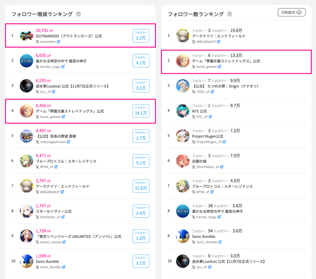 OUTRANKERS公式、キャンペーン毎日開催で約2万フォロワー増加