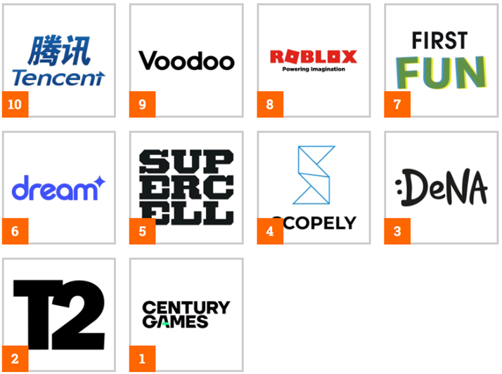世界モバイルゲーム企業トップ50、点点互動が首位に