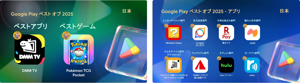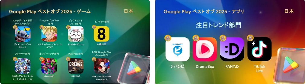 2025年11月19日、2025年に日本で人気を集めたGoogle Play のコンテンツを紹介する「Google Play ベスト オブ 2025」の受賞作品が発表された。